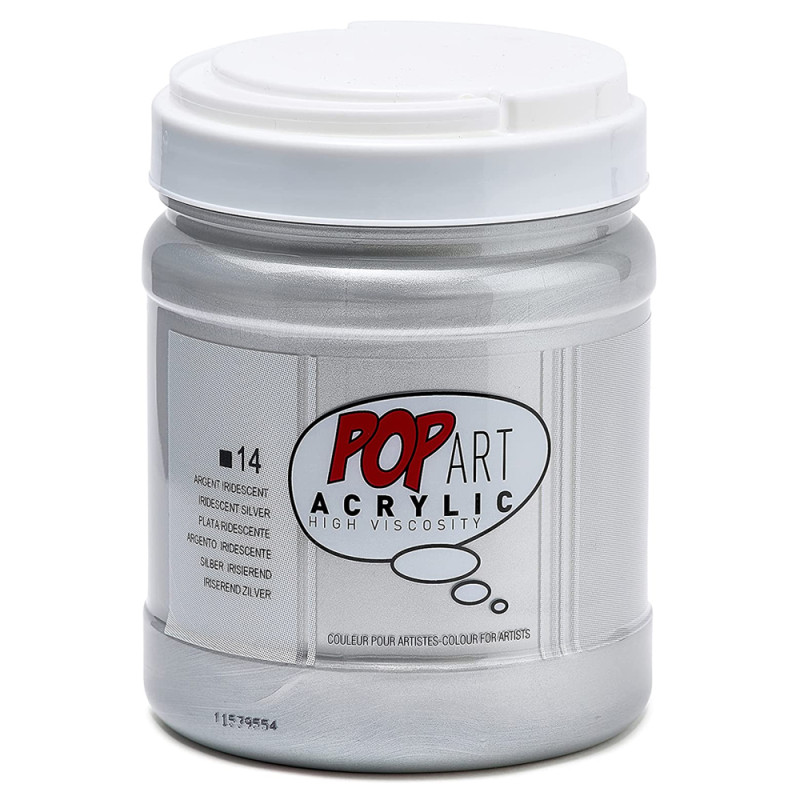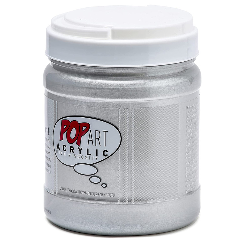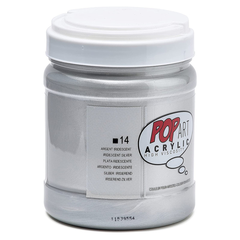 Peinture à l’eau, couleur argent, opaque et très résistante à la lumière, de finition mate-satinée.