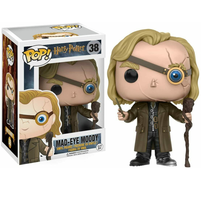 Une figurine en vinyle basée sur le personnage de Mad Eye Moody de la série de films Harry Potter.