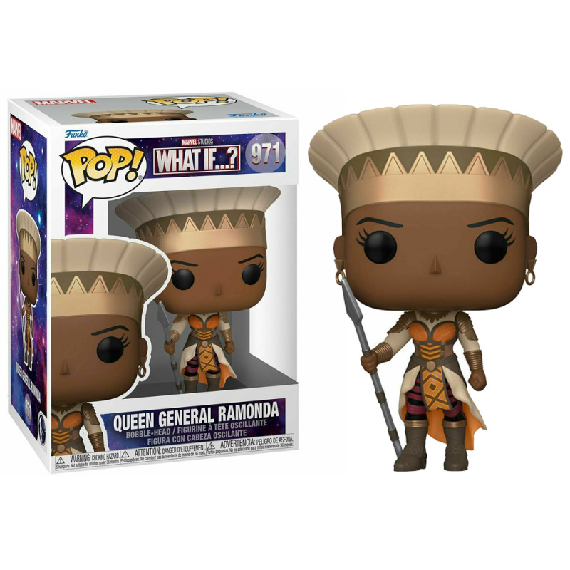 La figurine représente Ramonda en tant que reine générale dans l’univers « What If…? » de Marvel Comics, avec une tenue et un design adaptés à cet univers alternatif.
