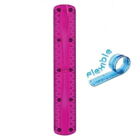 Règle transparente flexible en polymère à haute résistance mécanique. Pour une prise en main plus aisée, le corps de la règle est moulé.