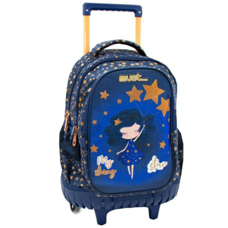 Le sac à dos à roulettes Must My Shiny Star avec 3 compartiments est idéal pour les filles qui souhaitent combiner un style unique avec un sac d’école pratique et durable !