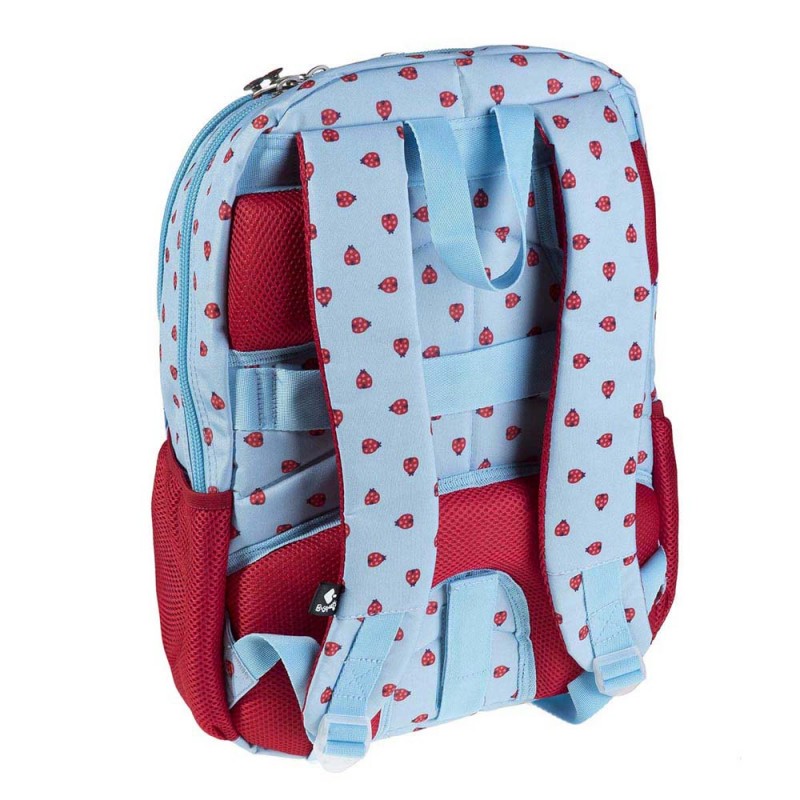 sac à dos double LADYBUG a deux poches principales pour transporter des livres, des cahiers et des dossiers.