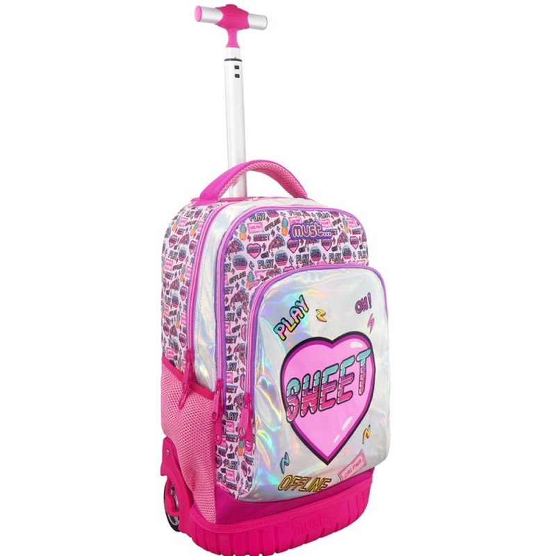 Le sac à dos à roulettes pour école primaire Must Premium Sweet avec 3 compartiments est idéal pour les filles qui souhaitent combiner un style unique avec un sac d’école pratique et durable !