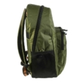 Sac a dos scolaire REVERSE est décoré d’un tissu herbeux vert avec le logo noir et blanc, au centre une broderie circula