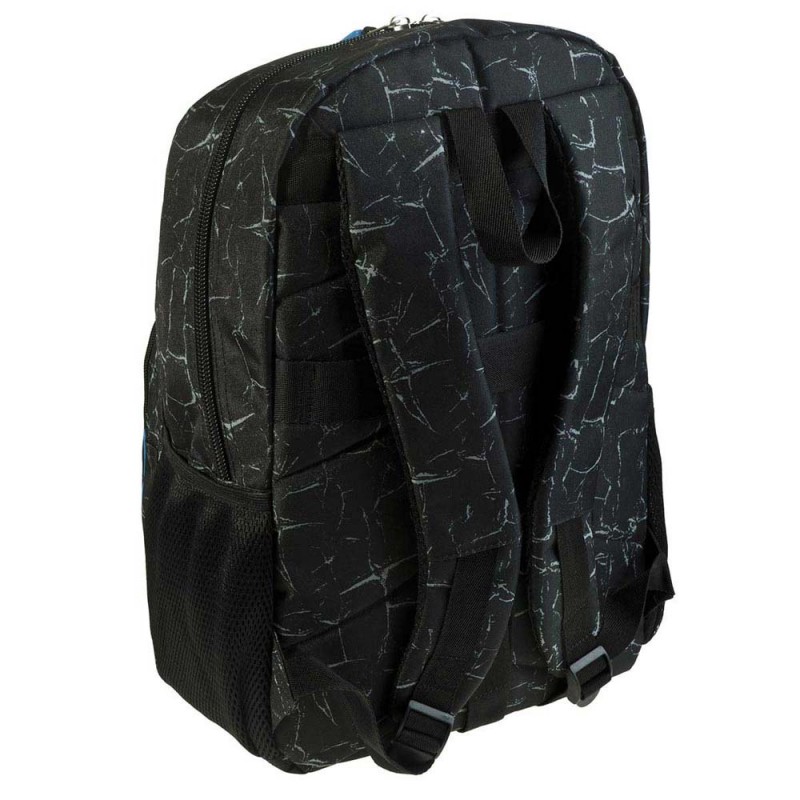 sac a dos scolaire ROUTE 66 est décoré d’un tissu d’asphalte noir avec un motif gris qui simule l’asphalte craquelé de l