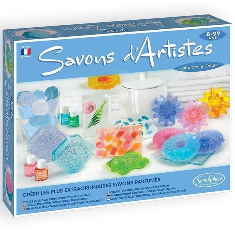 Un petit laboratoire cosmétique créatif pour créer de véritables savons d’artistes, personnalisés au gré de l’imagination de votre enfant. D’un style contemporain, romantique ou féerique, ces savons hauts en couleur aux éclats pailletés raviront vos en