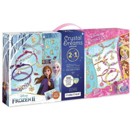 Débloquez des heures de plaisir avec ces 12 bracelets de bricolage magiques inspirés de la reine Elsa de Disney et des princesses Belle, Ariel et Raiponce. Le kit est livré avec 313 pièces et deux livres exclusifs Make It Real de 40 pages !