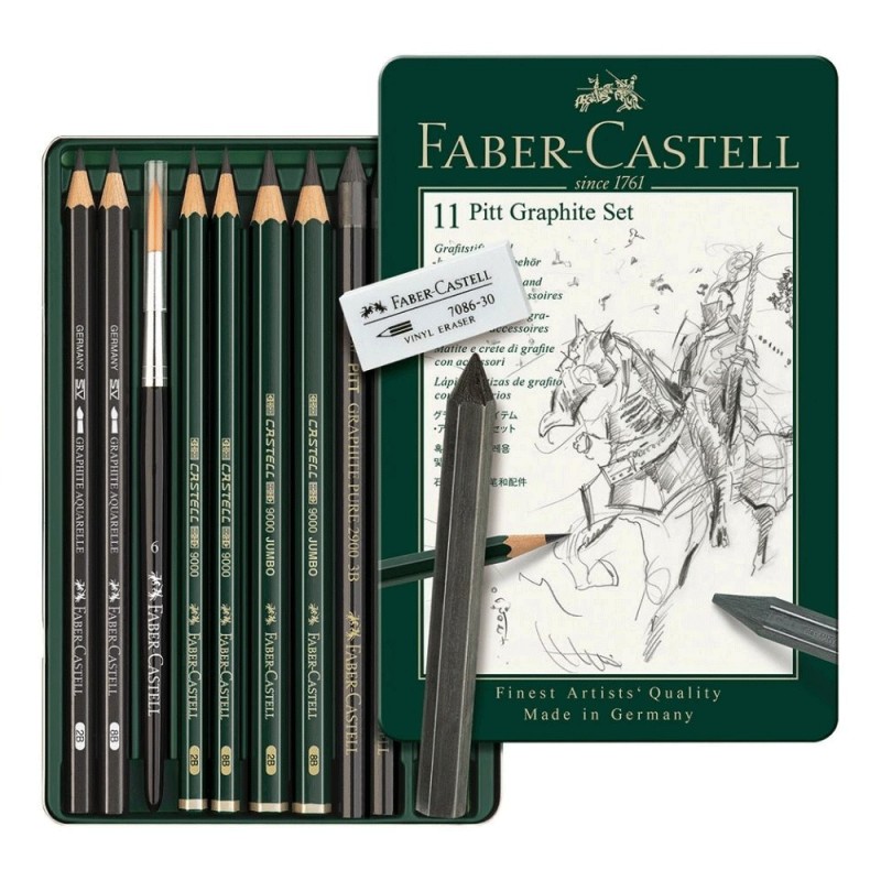 Set de crayons Pitt Graphite, boîte métal de 11 pièces