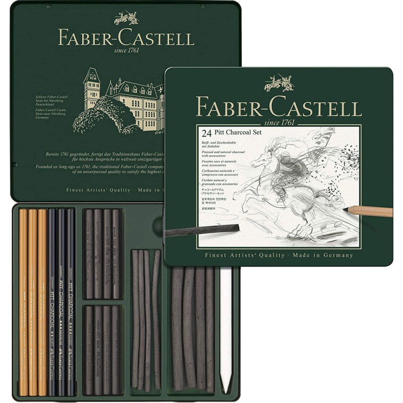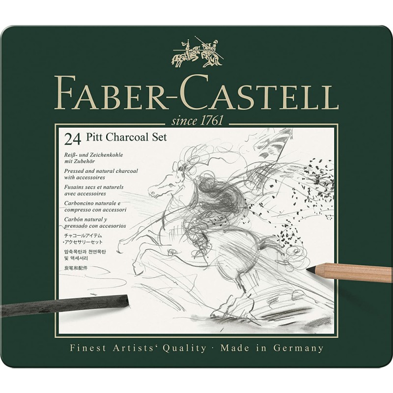Set de fusains Pitt Charcoal, boîte métal de 24 pièces