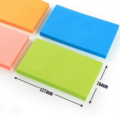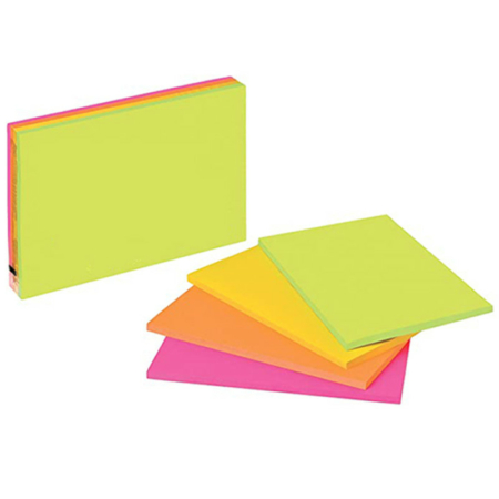 Post-it se présentent sous forme de petits blocs carrés de feuilles détachables et repositionnables, de tailles 76×127 et de couleurs vives et claires (le jaune, le rose, le vert, l’orange, couleurs fluos, etc.), ayant une petite bande autoadhésive au