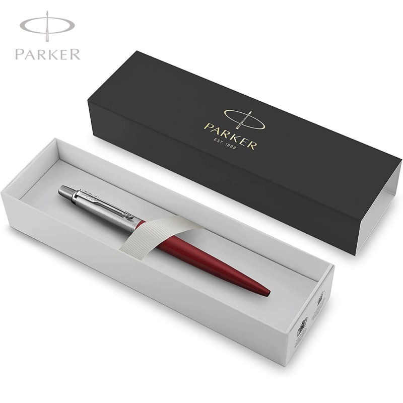 Fabriqué par des experts, le corps iconique en acier inoxydable est complété par un clip en acier inoxydable brillant en forme de flèche. Le stylo à bille Parker Kensington Red Chrome Colour Trim est immédiatement remarqué,