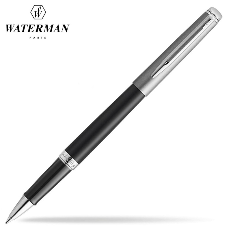 Stylo Roller WATERMAN de la série Hémisphère Essential Metallic CT – Couleur Noir Matte – Livré avec un Coffret Waterman