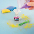 Remplissez ces bouteilles en plastique avec différentes couleurs de lueur dans le sable noir et faites de l’art du sable ! Avec le cordon et les breloques vous pouvez faire des colliers !