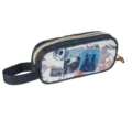 Trousse-2 compartiment. GREENLAND est décoré d´un tissu marbré majoritairement noir et gris avec une brod