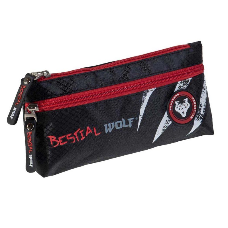 trousse duuble zip BESTIAL WOLF est décoré d´un tissu en nylon noir avec une finition diamant qui lui donne un look très