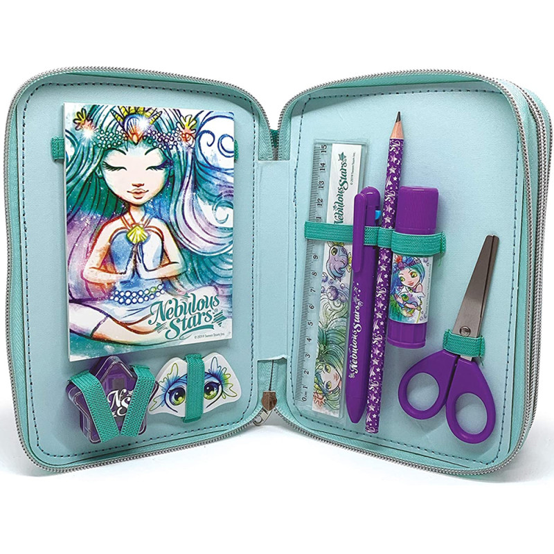 Les Nebulous Stars sont partout pour t’encourager, même à l’école ! Cette collection de trousses de luxe composées de trois compartiments offre un ensemble complet de papeterie ainsi qu’un assortiment de crayons de couleur en bois et de feutres. Tous les éléments sont à l’effigie de la marque Nebulous Stars !