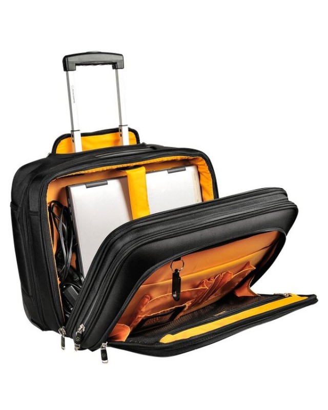 Avec 4 compartiments séparés pour ranger ordinateur, dossiers, vêtements et accessoires.